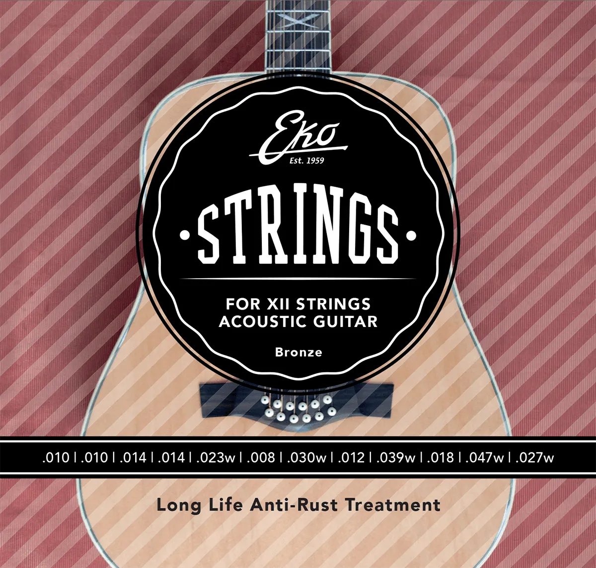 12 pcs roundwounded bronze steel strings, for 12-string acoustic guitar.Gauge: .010 .010 .014 .014 .023w .008 .030w .012 .039w .018 .047w .027