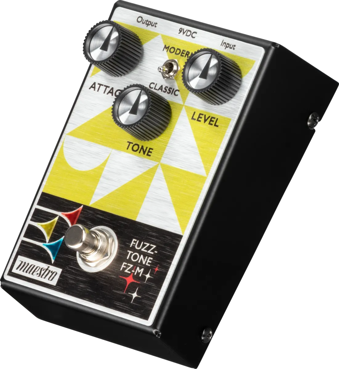 Maestro created the world’s first fuzz pedal – the Maestro Fuzz-Tone FZ-1. Introduced in 1962, the Fuzz-Tone became the sound of rock and roll and a must-have accessory for guitarists everywhere after the success of 1965’s (I Can’t Get No) Satisfaction by the Rolling Stones, which prominently featured its cutting edge sound. Now Maestro is bringing the fun and sonic fury of those early Fuzz-Tones back with the new Maestro Fuzz-Tone FZ-M. This all-analog pedal boasts a Mode toggle switch that provides two pedals in one functionality for increased sonic versatility with both an FZ-1 inspired fuzz sound and a thicker, more modern fuzz tone. Its 3-knob control layout gives you intuitive control. The Attack knob controls the amount of fuzz. The Tone control lets you adjust the timbre from bright and raspy to warm and wooly and anywhere in between. Use the Level control to set the output volume; it can go way beyond unity gain when desired. The true bypass footswitch triggers the LED lights in the bugles in the Maestro logo when it’s on, so you’ll always know when the effect is active.
