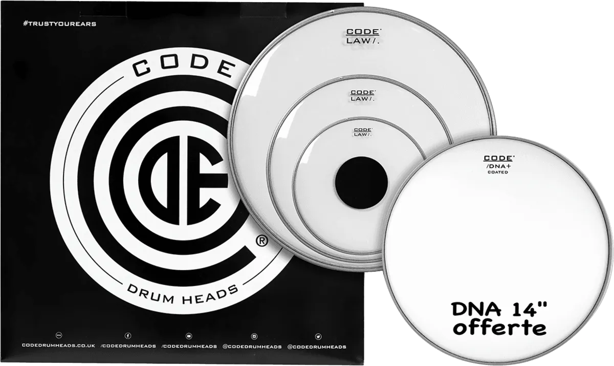 LAW Fusion Pack with 10", 12", 16" clear drum heads for toms, and one 14" DNA coated snare head.