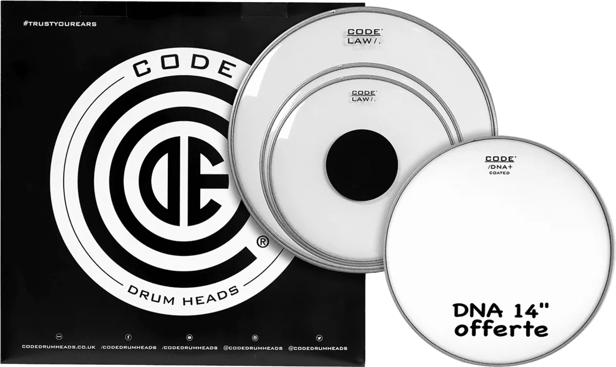 LAW Fusion Pack with 12", 13", 14" clear drum heads for toms, and one 14" DNA coated snare head.