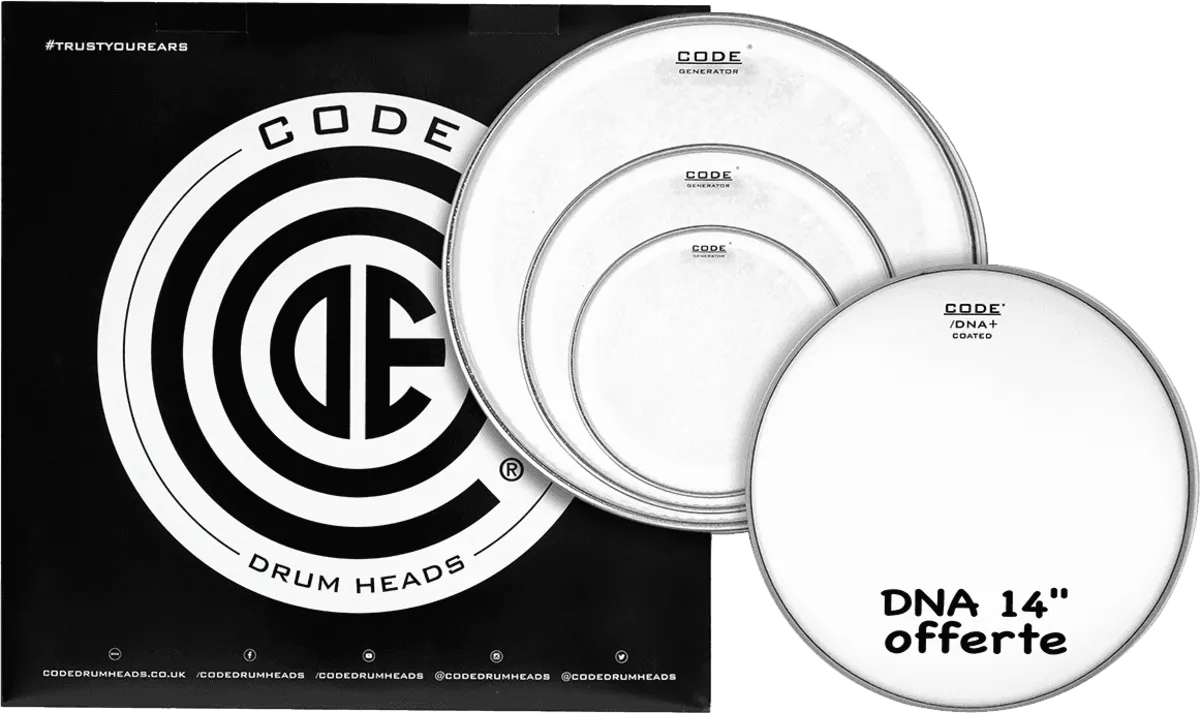 Rock Pack with 10", 12", 16" Generator clear heads for toms, and one 14" DNA coated snare head.