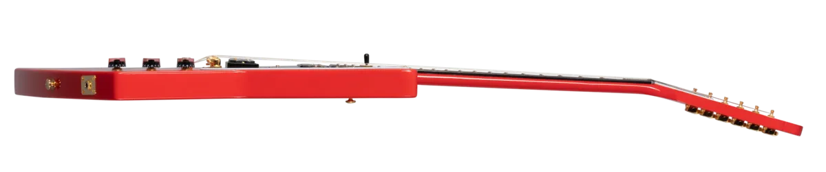 Lzzy Hale, Gibson’s first female Brand Ambassador, is known for her explosive live performances with her band Halestorm. Her new Explorerbird is a hard-rocking, great-looking guitar that is built for heavy music. It combines the body shape of the classic Explorer™ and a Non-Reverse Firebird™ headstock into an artist model that is sure to turn heads and excite audiences. The Cardinal Red nitrocellulose lacquer finish is complemented by gold hardware and frets… and even gold screws and rods on the powerful 70s Tribute pickups. A Modern Series hardshell case is also included.