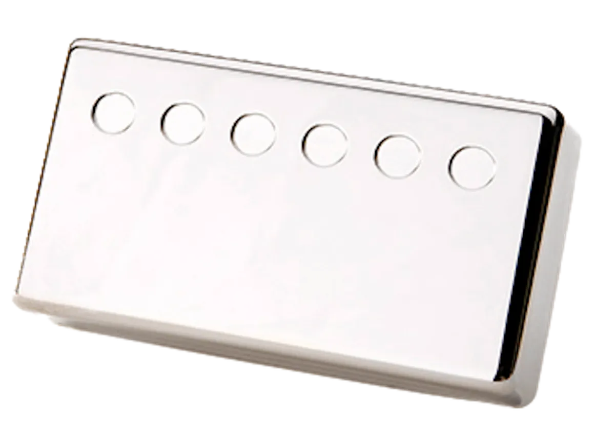 An original OEM replacement or restoration pickup cover that fits perfectly over any neck position Gibson humbucker, with a measurement of 50 mm between the centers of the outside poles.