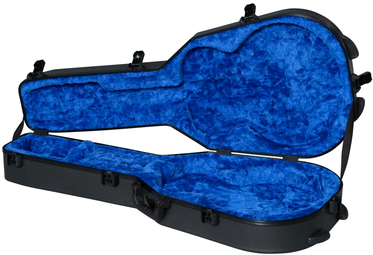 Inspired by the design of vintage 70s-era Gibson "chainsaw" cases, Gibson Deluxe Protector Series hardshell cases feature rugged polyethylene shells and modern improvements like TSA-approved locks, ergonomic soft-grip handles, and black powder-coated hardware. Protect your instrument with a case that delivers both vintage-inspired style and modern technology.