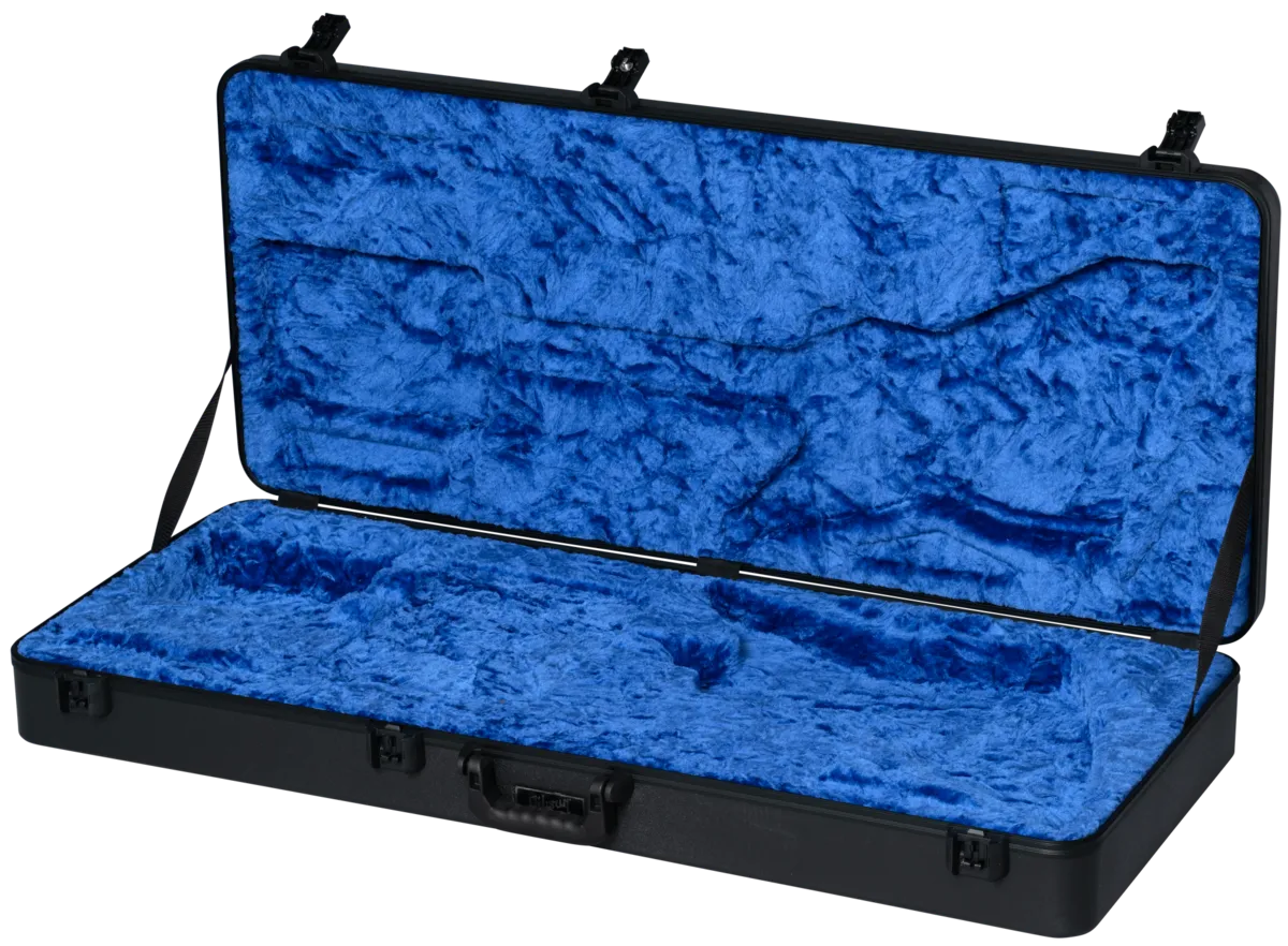 Inspired by the design of vintage 70s-era Gibson "chainsaw" cases, Gibson Deluxe Protector Series hardshell cases feature rugged polyethylene shells and modern improvements like TSA-approved locks, ergonomic soft-grip handles, and black powder-coated hardware. Protect your instrument with a case that delivers both vintage-inspired style and modern technology.
