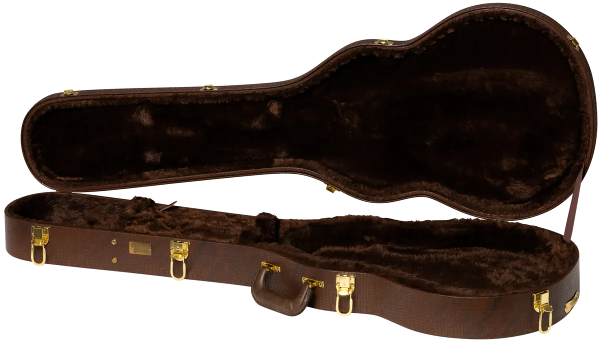 Since 1918, Lifton™ has been acclaimed worldwide for fine leather goods and musical instrument cases that are as synonymous with Gibson as the instruments inside of them. Lifton continues that tradition of excellence today with our Lifton Historic Hardshell Cases. Inspired by the iconic cases from the 50s and 60s that were made during the height of Gibson's Golden Era, they feature classic styling and are designed to provide a lifetime of protection for your prized Gibson guitar. Designed to fit: 50s Les Paul™ Jr. (fits most Les Paul Jr. models) Exterior: Brown Faux Gator Skin Tolex Interior: Deep Brown Plush Historic D-shaped handle Historic style latches with one locking latch Accessory compartment with ribbon pulltab Internal dimensions: 41" total interior length, 21 3/4" body length, 8 5/8" upper bout width, 8 1/4" waist width, 12 3/4" lower bout width, 2" depth