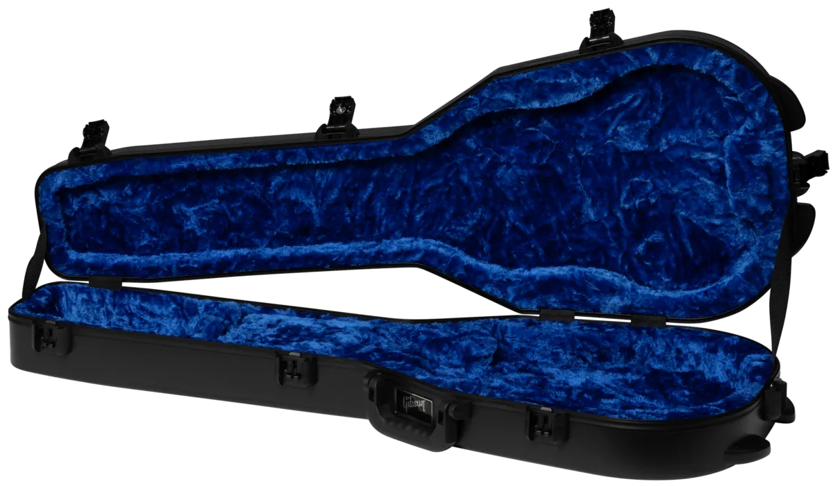 Inspired by the design of vintage 70s era Gibson “chainsaw” cases, Gibson Deluxe Protector Series hardshell cases feature rugged polyethylene shells and modern improvements like TSA-approved locks, ergonomic soft-grip handles, and black powder coated hardware. Protect your instrument with a case that delivers both vintage-inspired style and modern technology.
