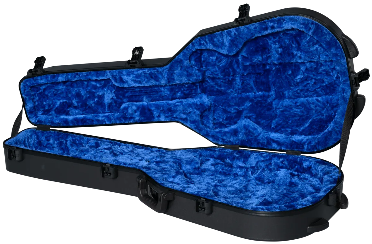 Inspired by the design of vintage 70s-era Gibson "chainsaw" cases, Gibson Deluxe Protector Series hardshell cases feature rugged polyethylene shells and modern improvements like TSA-approved locks, ergonomic soft-grip handles, and black powder-coated hardware. Protect your instrument with a case that delivers both vintage inspired style and modern technology.