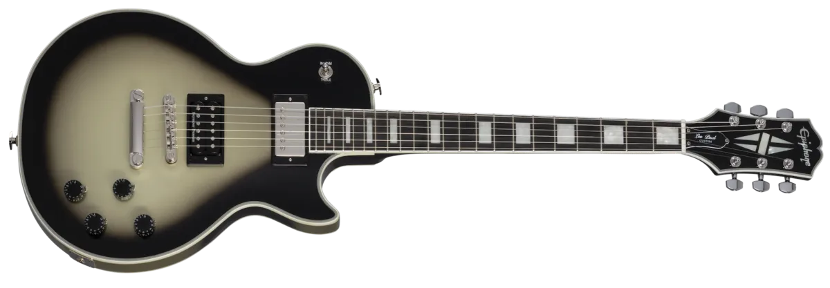This model from the Adam Jones Les Paul Custom Art Collection features Julie Heffernan's"Study For Self Portrait with Rose Skirt and a Mouse" on the back. It is also an exceptional instrument for your next musical masterpiece. It has a bound mahogany body with a maple cap, a three-piece bound maple neck with an Adam Jones Custom profile, and an ebony fretboard. It is equipped with a reverse-mounted Epiphone ProBucker™ Custom humbucker ™ in the neck position and a Seymour Duncan® Distortion in the bridge; both are wired to CTS® potentiometers and Orange Drop® capacitors. A Marquee Back Plate with the artist's name and the name of the artwork is also included. Finished in Antique Silverburst as an homage to Adam's beloved original Silverbust 1979 Gibson® Les Paul Custom, a Protector hardshell cases also included.