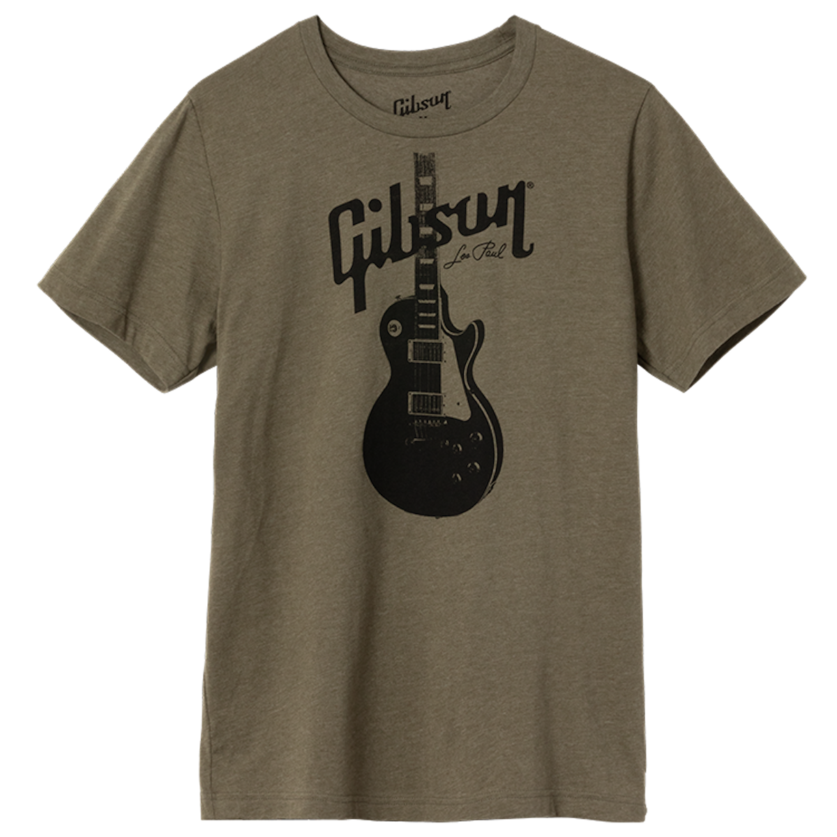 Les Paul tee features the historic Les Paul and Gibson graphic.