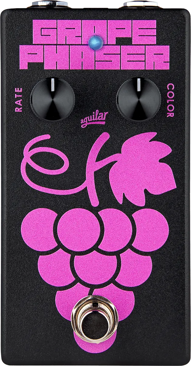 The Grape Phaser provides lush, analog phase shifting courtesy of a simple, two- knob layout. RATE controls the speed of the modulation, while COLOR feeds a portion of the signal back through the phase shifting circuit, creating new and super funky bass sounds!