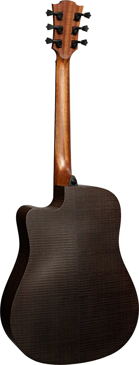 The dreadnought cutaway shape, combined with quarter round body bindings, enhances playability and comfort. The graphite nut & saddle provide stability and quality in playing experience.