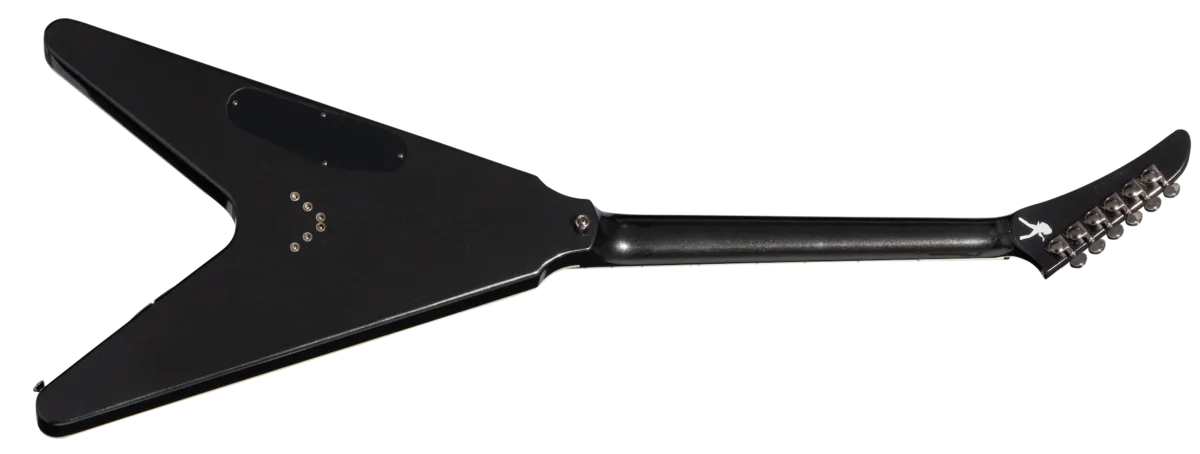 The 24.75" scale mahogany neck has a gloriously agile ebony fretboard with 24 medium jumbo frets, an Explorer™-style headstock with Grover® Mini Rotomatic® tuners, and a Graph Tech® nut. The mahogany Flying V-style body is equipped with a LockTone™ Tune-O-Matic™ bridge, string-thru Flying V tailpiece, and Dave's signature Seymour Duncan® Thrash Factor pickups that deliver all the high-output mayhem you'd expect from a Mustaine signature axe. The pure-metal looks are rounded out with a Black Metallic finish offset with white body, neck, and headstock binding, along with black nickel hardware. A hardshell case is also included.