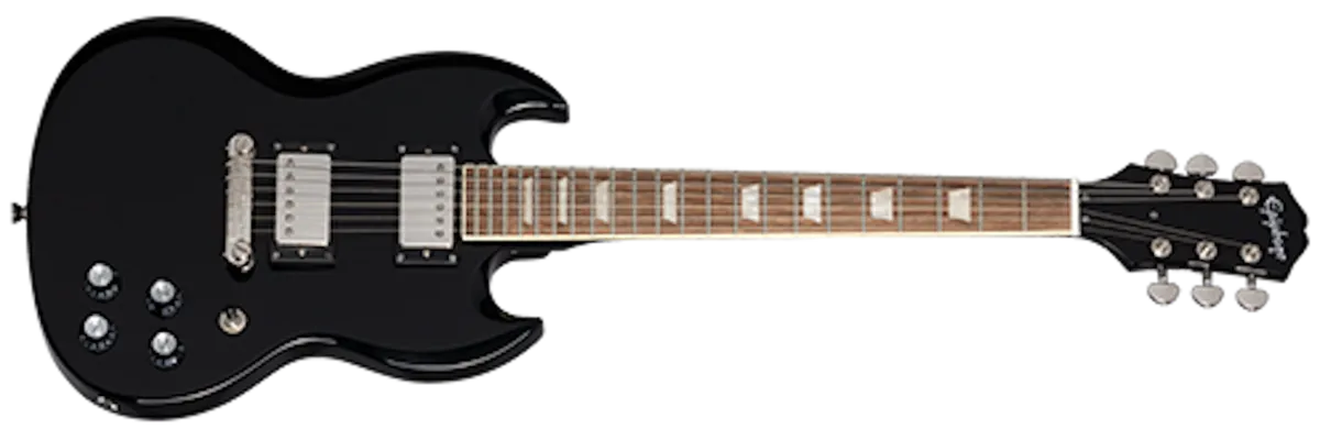 The Epiphone Power Players SG™ is a 3/4+ version inspired by the legendary Gibson SG shape. It has a 22.73” scale length and a slightly smaller mahogany body making it light, easy to play, and an excellent choice for younger players. The Power Players SG is also a great travel guitar choice for more experienced players. It sounds better and stays in tune longer than other “student model” guitars due to its high-quality components and excellent build quality. The bolt-on mahogany neck has a sculpted heel for improved upper fret access, and it is powered by a pair of authentic Epiphone humbuckers for rich, full SG tone. The Power Players SG comes equipped with a gig bag, strap, picks, and a guitar cable.