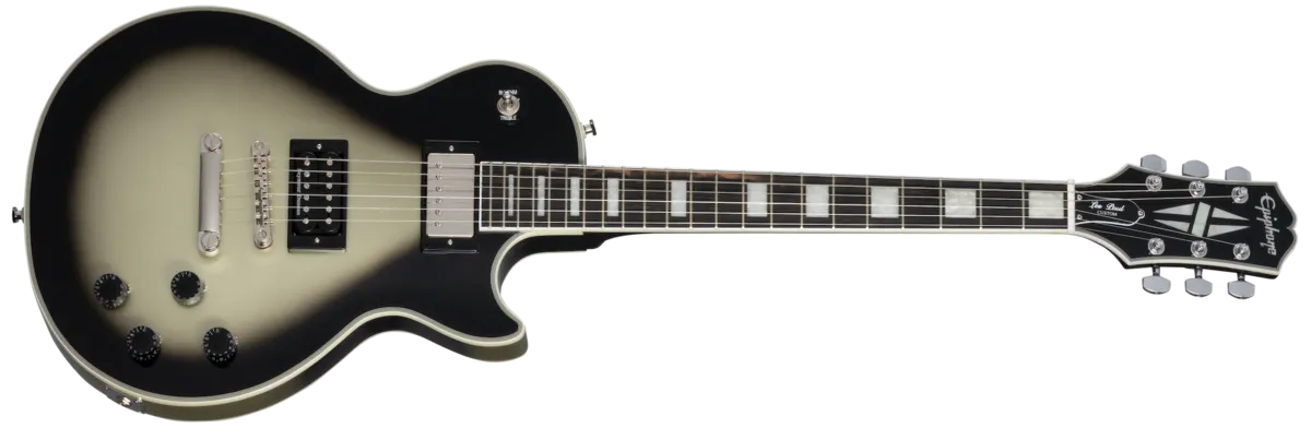This model from the Adam Jones Les Paul Custom Art Collection features Ernst Fuchs' "ANTI-LAOKOON 1965" on the back. It is also an exceptional instrument for your next musical masterpiece. It has bound mahogany body with a maple cap, a three-piece bound maple neck with an Adam Jones Custom profile, and an ebony fretboard. It is equipped with reverse-mounted Epiphone ProBucker™ Custom humbucker ™ in the neck position and a Seymour Duncan® Distortion in the bridge; both are wired to CTS® potentiometers and Orange Drop® capacitors. A Marquee Back Plate with the artist's name and the name of the artwork is also included. Finished in Antique Silverburst as an homage to Adam's beloved original Silverbust 1979 Gibson® Les Paul Custom, a Protector hardshell case is also included