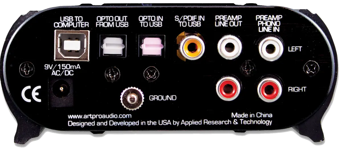 Front mounted gain control and Signal/Clip LED allows easy optimization of a wide range of analog input sources. The USB Monitor/headphone provides zero latency monitoring of the input source for easy cueing. The USB PhonoPlusPS can also act as audio playback source for any USB equipped computer or laptop. Optical TOSLINK Input and Output as well as an S/PDIF Input make the USB PhonoPlusPS an ideal analog / digital audio to USB interface as well.