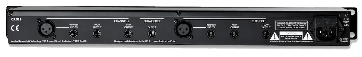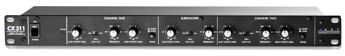 The CX311 two-way stereo crossover network has an additional subwoofer output for low-end frequency reinforcement. It employs 24dB/octave state-variable, Fourth-order Linkwitz-Riley filters that guarantee properly phased outputs at all frequencies which is optimal for the proper acoustic summing of common signals from adjacent drivers in the crossover region.