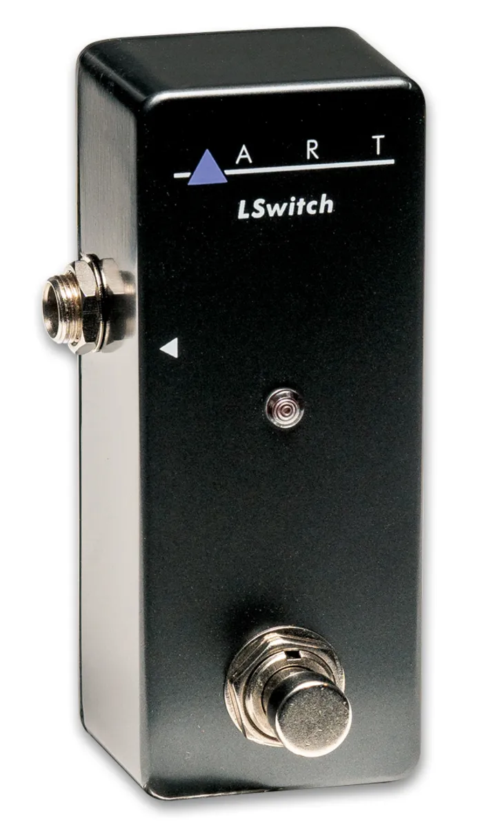 The LSwitch is a normally closed (NC) latching footswitch for use with various effect units or amplifiers that have an external footswitch jack. The onboard LED is supplied power by the switching circuitry on the host device; not all host units will necessarily power the LED properly, but the footswitch will work in spite of this.