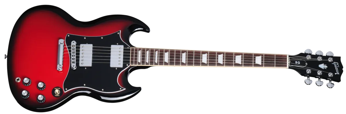 The Gibson SG Standard rocks the classic looks and features associated with the late 60s style SG™ models sought after by many. Now featured as part of the Custom ColorSeries, it adds exciting new color options to liven up any stage or guitar collection. features a rounded profile mahogany neck, bound rosewood fingerboard, long tenon 19th fret neck joint, and a solid mahogany body that provides the backbone for singing sustain. The 490R and 490T Alnico 2 pickups provide the power to drive. A black, 5-ply, full-face pickguard set this SG Standard apart from others... a truly versatile classic.