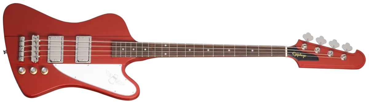 What do you think of first when someone mentions a Thunderbird ™ Bass? The distinctive shape that legendary automotive designer Ray Dietrich created? The sustain-enhancing nine-ply neck-through-body construction? The low-end punch from the two powerful bass humbucker™ pickups? Classic eye-catching, auto-inspired custom colors? In honor of the 60th anniversary of the groundbreaking Gibson Thunderbird, Epiphone is proud to introduce the Thunderbird '64. Inspired by the vintage Gibson T-Bird basses of that era, the new Thunderbird '64 retains all of the classic elements that made the originals iconic, from the nine-ply mahogany and walnut neck-through-body construction right down to the instantly-recognizable hot-stamped Thunderbird logo on the three-ply pickguard.