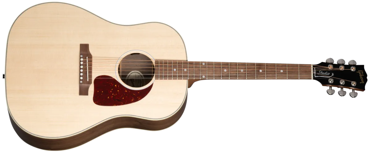 Turn heads with the J-45™ Studio Walnut. Hand-built using solid walnut back and sides and a solid Sitka spruce top, this updated J-45 Studio features a traditional body a depth for warm, rich tone. The Advanced Response profile utile neck ensures smooth, easy playability. Available in Satin Natural and Satin Walnut Burst finishes (including a left-handed model), the J-45 Studio Walnut has an L.R. Baggs™ Element Bronze active under-saddle piezo pickup for studio-quality plug-and-play anywhere. Packaged in an included hardshell case for portability, this J-45 Studio Walnut is ready for the studio and the stage.
