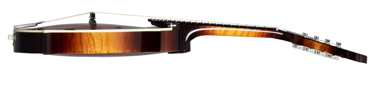 The F-5G is a Modern Collection version of Gibson's iconic F-5 design. Tuned to the needs of modern mandolin players, its player-friendly specs include an unbound ebony fingerboard, a 14-degree fingerboard radius, no pickguard, and a short fingerboard extension. The neck and body are made from figured red maple and are coupled with a carved Sitka spruce top. The F-5G features refreshed specifications, contours, and construction for optimal acoustic response. Finished in Dark Burst gloss nitrocellulose