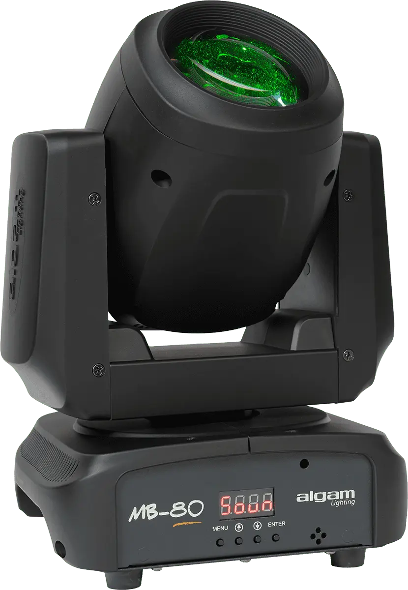 The MB80 is a beam projector with a highly powerful 80W white LED. Onboarding a wheel of 8 gobos with its 8-colour palette and a double rotating prism of 6 or 12 facets, this bluffing efficiency for its size projects light beams and patterns all as attractive as each other. Developed by a team of enthusiasts, the MB80 beam projector is compatible with a wide range of fixed or mobile applications. Its quiet motorization ensures smooth panning movements up to 540° and tilting up to 230° with a striking dynamism. DMX controllable through 11 or 13 channels for extended possibilities, or configurable via the integrated control panel, this moving head also operates in automatic, music-controlled or master/slave mode. Weighing only 3kg, the MB80 has a removable base plate system for safe head-down installations.