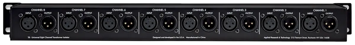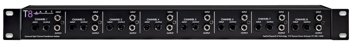 The T8s mounting ears are reversible so you can have either the XLRs on the front or The 1/4" and RCA phono jacks on the front. This maximizes flexibility in cabling your system. Whether you need an interface between a computer based audio workstation and your monitor system, isolation on long cable runs in a fixed installation, isolation of multiple signal sources from your recording equipment, or in many cases, just a safer connection between two audio systems, the T8 can accommodate.
