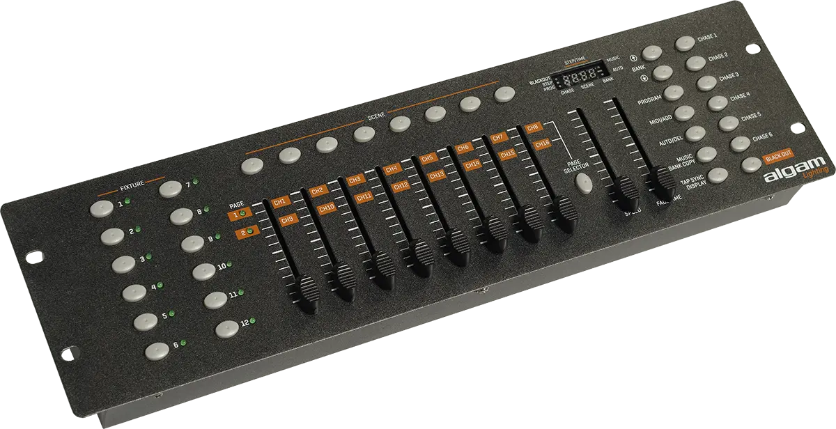 - Number of fader: 8 x 2 banks + 2 SPEED & FADETIME chase controls