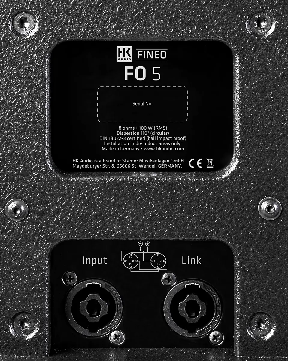 The ultra-compact, cube-shaped FO 5 features an innovative coaxial 5"/1" transducer with 110° dispersion, in which the silk dome tweeter uses the shape of the woofer cone as a wave guide. This makes it particularly suitable for close listening distances and ideal for use as a delay speaker in larger rooms for front sound reinforcement or nearfill at the edge of the stage in fixed installations. In combination with the S112 (F) subwoofer, it grows to full size and offers a powerful full-range sound reinforcement solution that will please even the most discerning ears. In addition to nearfield monitoring at lecterns, other areas of application include high-quality hospitality or background sound reinforcement as well as unobtrusive placement in exhibitions, for elaborate immersive audio applications with many sources or simply for use by Power Hi-Fi enthusiasts. With its extensive range of accessories, the FO 5 can be quickly and safely installated in all standard applications, but can also handle more specialised requirements with ease.
