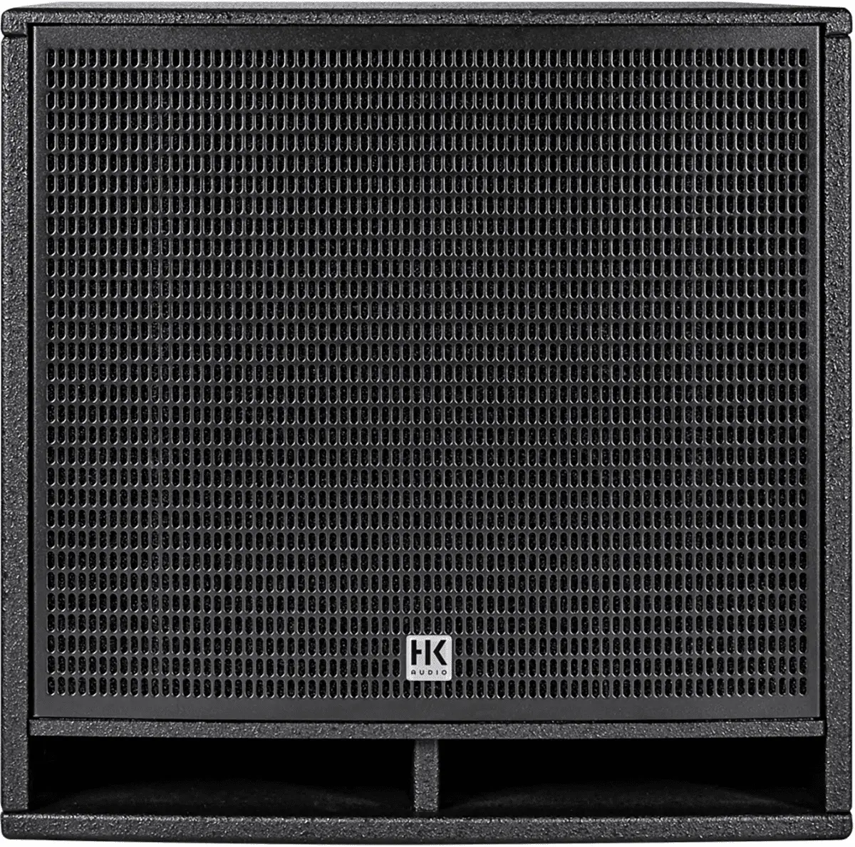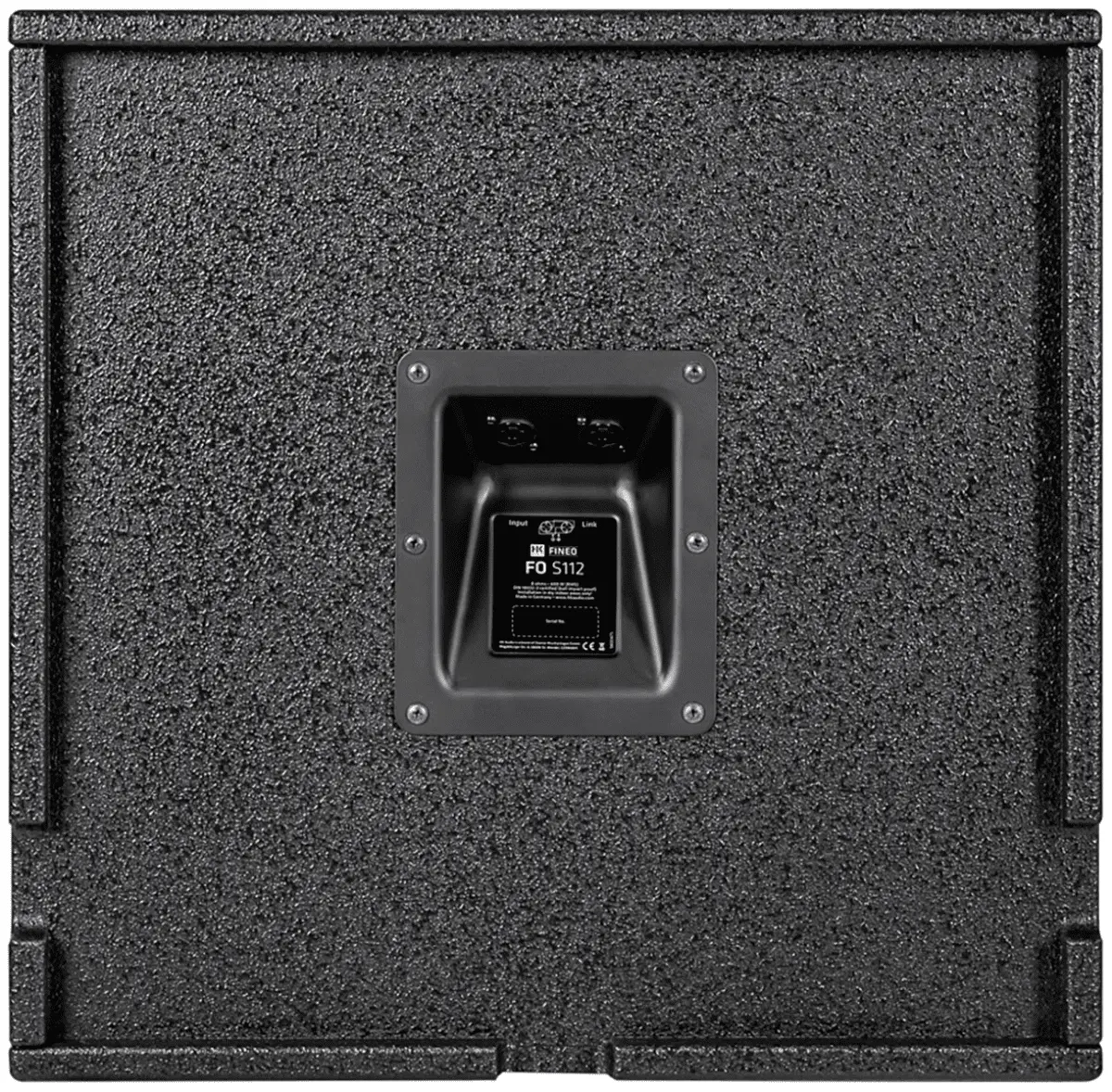 Very compact subwoofer with 12" woofer, 2.5" voice coil and 50 Hz tuning frequency. Ideal low-end support with powerful bass and high sound pressure as a system subwoofer or surround LFE for installations with compact speakers like the FO5. Easy to integrate in environments with limited space. The cable feed-through on the rear, with cut-outs to the left, right or bottom, allows cables to be routed close to the wall, meaning the subwoofer can be placed against the wall without gaps. A secondary grille protects the bass reflex port from accidental or deliberate insertion of foreign objects. A ball-impact resistance certificate in line with DIN 18032-3 is provided for installations in sports facilities.