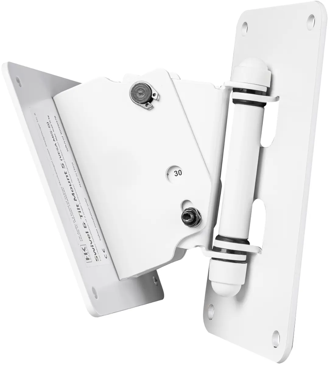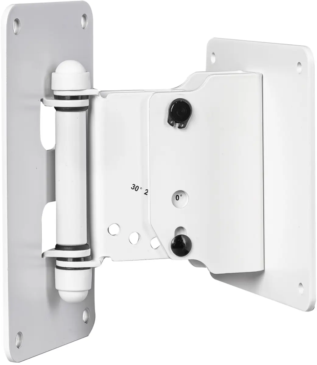 The swivel and tilt wall mount S (VESA MIS-D) can be used to mount a FO5, FO 8 or FO10 speaker on a wall. Together with the swivel and tilt bracket, the speaker can be continuously rotated horizontally and tilted vertically in 10° increments from 0° to 30°. The swivel and tilt wall mount S is attached via the VESA hole pattern (MIS-D) on the back of the speaker.