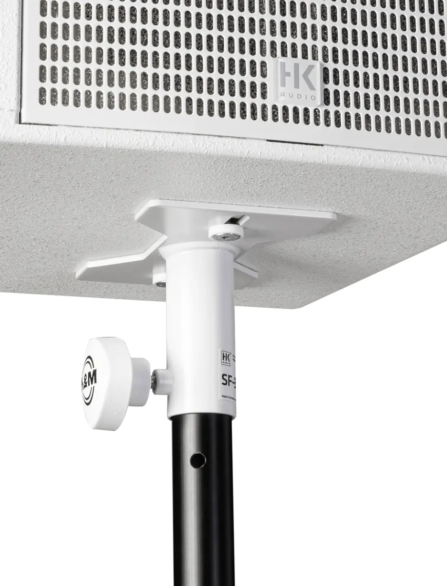 The SF-35 allows a FO 8, FO 10, FO 12 or FO 15 loudspeaker to be used on a standard 35 mm speaker stand. The SF-35 sleeve is simply screwed onto the underside of the cabinet. This allows the speaker to be locked to the stand without tools by means of an easy-to-operate locking screw.