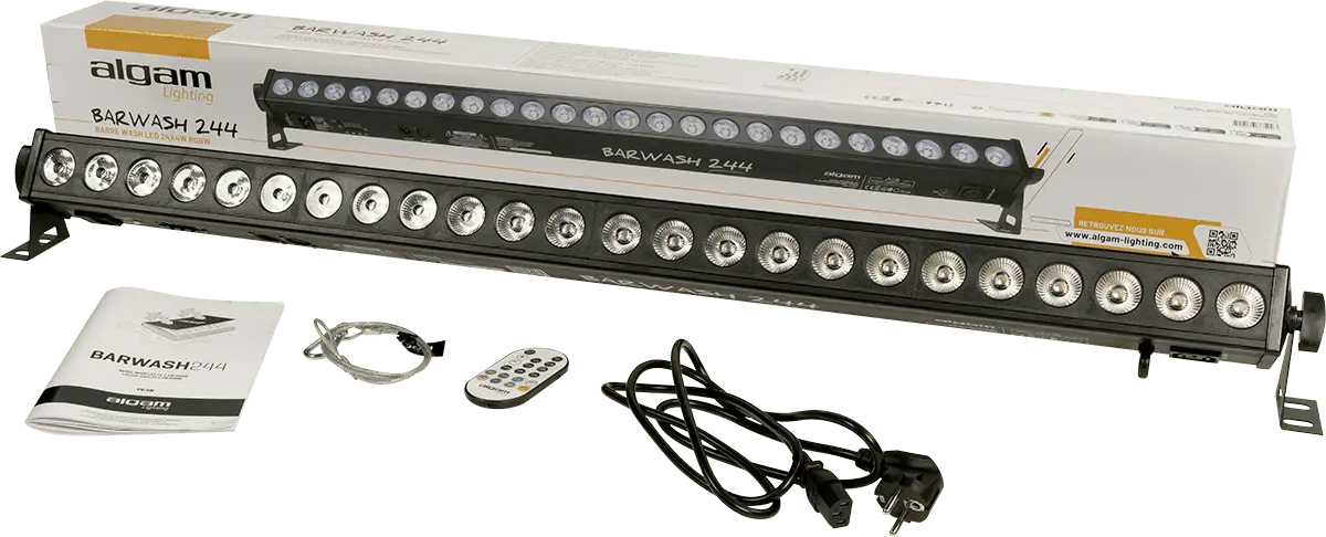 The BARWASH 244 is a versatile RGBW LED bar for all your architectural and performance lighting needs. Its 24 x 4W RGBW LEDs, each individually controllable in 8 groups, and 6 DMX control modes guarantee brilliant colors, impressive brightness and spectacular effects. The intuitive LCD interface and automatic music-detection modes make it easy to use for all types of performances and events. With its robust construction and universal mounting brackets, BARWASH 244 is easy to install in any configuration. Whether you're a lighting professional or a demanding amateur, BARWASH 244 is the ideal tool to enhance your events and spaces. Its passive cooling ensures extremely quiet operation, making it particularly suitable for applications where discretion is essential.