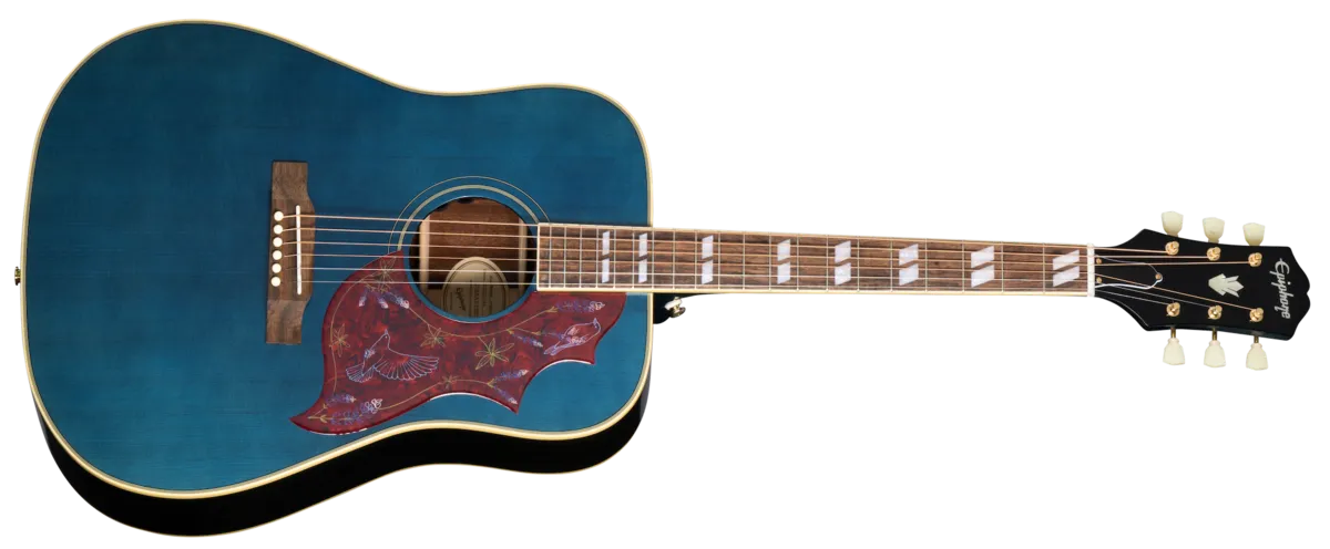 A decorated songwriter, Academy of Country Music Entertainer of the Year, passionate animal advocate, restaurateur, businesswoman, and New York Times best-selling author, Miranda Lambert is among the brightest stars in modern country music. Named as one of the most influential people in the world by TIME, Lambert has won multiple GRAMMY® Awards and has been honored with more Academy of Country Music Awards than any artist in history. A constant champion of female artists including numerous collaborations and her work as a member of the Pistol Annies -Miranda Lambert has made it a priority to encourage more girls and women to pick up guitars themselves. Her music and mission have been honored with a new Epiphone signature model guitar: the Miranda Lambert Bluebird Studio is as distinctive as its namesake. A variation on the iconic Hummingbird™, t features a square shoulder layered mahogany body with a solid Sitka spruce top, a vivid Bluebonnet gloss finish celebrating the official flower of her home state of Texas, and a custom Bluebird pickguard inspired by her chart-topping song of the same name. The onboard Fishman™ electronics make this guitar plug-in ready from the moment you take it out of the included hardshell case.