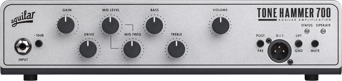 Designed for the discerning bassists, the Tone Hammer series offers a lightweight yet powerful solution inspired by the soulful warmth of tube amplifiers. It's rich and harmonic preamps offers a round, full-bodied character, making every note resonate with depth. It also features a classic 3-band EQ set with bass, treble and fully sweepable midrange controls. The Drive control adds distortion and even more tube-like grit and punch to your sound. Equipped with the Aguilar Cabinet Suite, universal mains, and expanded connectivity options, the Tone Hammer series meets the performance needs of bassists, ensuring a flawless blend between live, studio, and at-home settings.
