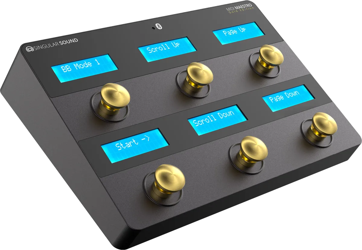 BeatBuddy mode.Selecting the dedicated Beat Buddy mode on your Midi Maestro gives you access to advanced features for more flexible control of your favourite drum machine. This mode allows hands-free navigation through the content, using the footswitches, and the ability to select out-of-order song parts, including skipping to the previous part. Within the Tempo function, you can choose the tempo of your rhythm via a tap tempo. You can also double the tempo or halve the tempo on the fly and simply return to the original tempo of your rhythm. The Accent function lets you add sounds such as claps, tambourine, bass drum, snare drum and hit-hats simply by pressing the corresponding footswitch, over and above the rhythm you're playing. Unlike using the BeatBuddy alone, you can stop the rhythm in playback with a single press (instead of two via the BeatBuddy alone).Aeros Looper Studio mode.The Midi Maestro has also been designed to enhance the control of your Aeros Loop Studio via a specially designed mode. This mode gives you hands-free access to song navigation and management (via the footswitches). Activating or deactivating a track is also made easy with a single press on the desired footswitch. It's also possible to play parts of songs out of order, but also to start a new track or part of a song with a simple press of the foot. So you have more flexible, targeted control over the actions you want to take to get the most out of your Aeros looper!Custom Midi mode.The Midi Maestro footswitch is also a simplified solution for controlling the full power of different Midi-compatible hardware. It allows musicians to dispense with the need to read long Midi manuals and get straight down to playing. The dedicated Midi Maestro mobile app features predefined controls, easy customisation and presets for popular devices. You have clear control over the actions requested via the integrated 6-screen display and the ten dynamic pages of Midi presets.