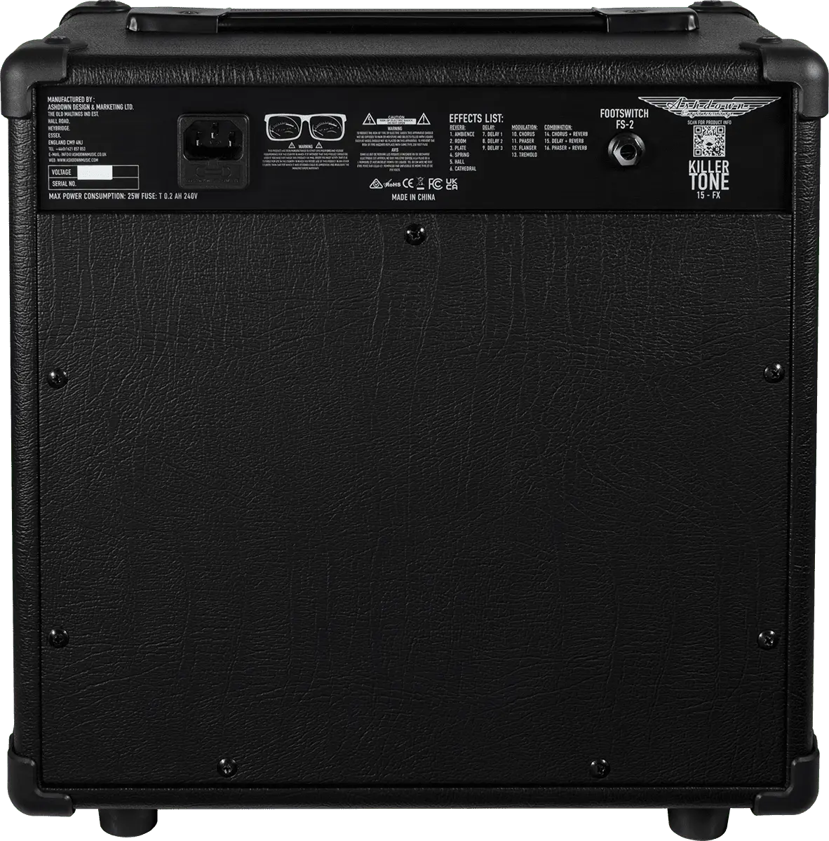 Meet the KT-15 FX, the latest addition to the AIl NEW Killer Tone practice amp series. This 15-watt powerhouse is meticulously designed to deliver Killer Tone day in and day out. Tuned to replicate the warmth of a tube amp, it's packed with modern features tailored for aspiring guitarists. With a 16-way digital effects unit, line input for jamming, and headphone out for silent practice, the KT-15 FX is your all-in-one solution for killer sound.