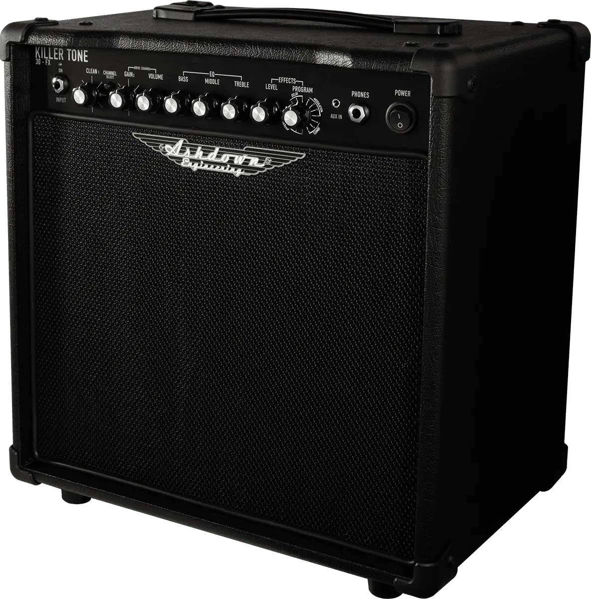 Introducing the KT-30 FX, the latest gem in the All NEW Killer Tone practice amp series. This 30-watt powerhouse is meticulously designed to deliver Killer Tone every day. Tuned to emulate the warmth of a tube amp, it's enriched with modern features tailored for aspiring guitarists. With a 16-way digital effects unit, line input for jamming, and headphone out for silent practice, the KT-30 FX is your ultimate companion for killer sound
