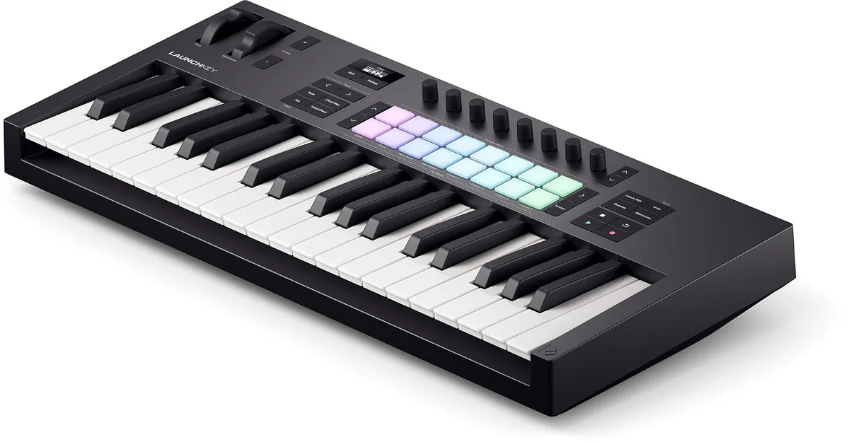 Launchkey 37 is a powerful DAW controller featuring a premium semi-weighted keybed, eight continuous encoders, nine faders, and 16 velocity-sensitive pads for playing drums, instruments, and launching clips. Designed for artists, the 37-key offers powerful DAW integration with a thoughtfully arranged control surface. Play instruments and drums, launch clips and scenes, and gain instant hands-on control over your DAW’s mixer, devices, and effects.