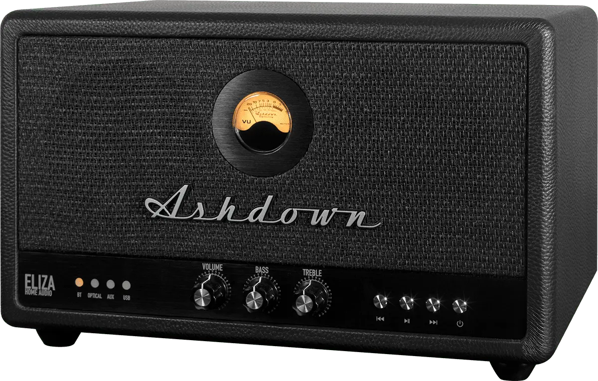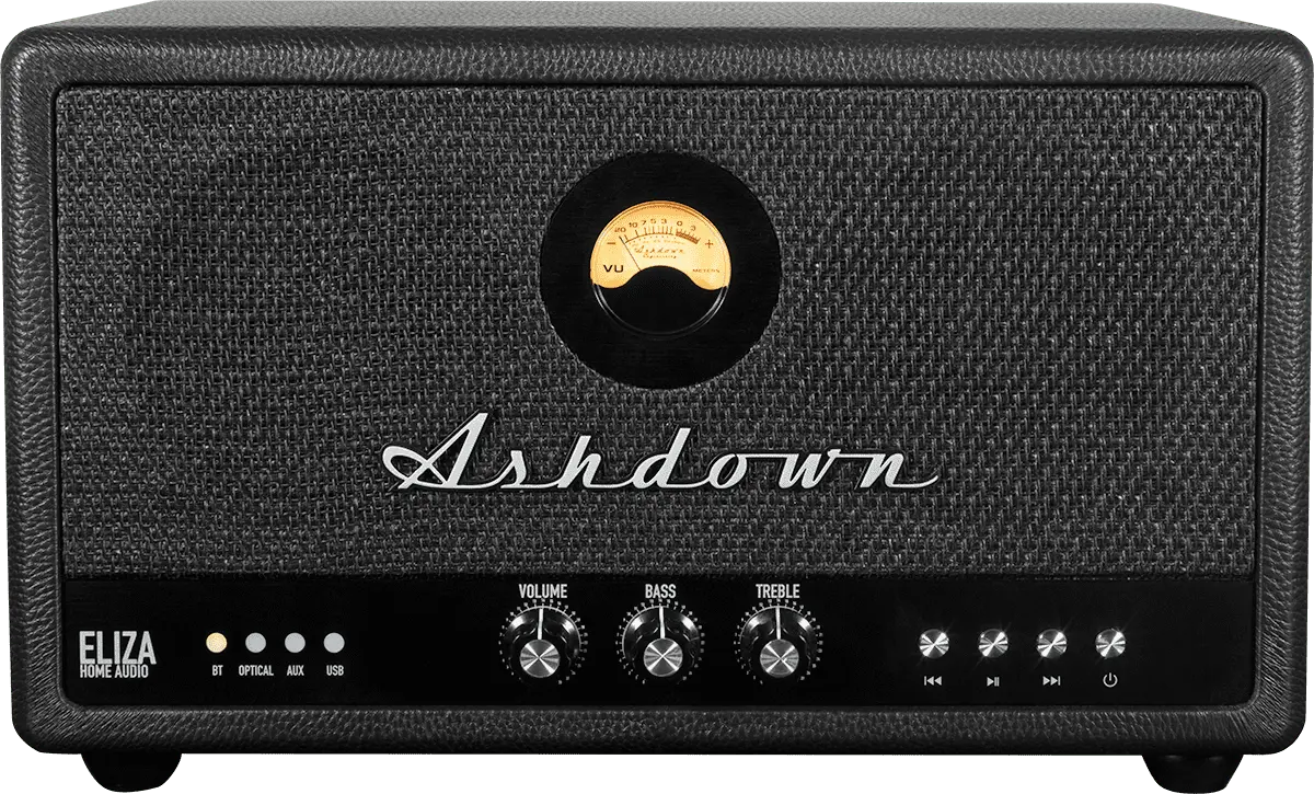 Meet the Ashdown Eliza, a brilliant addition to the NEW Ashdown Elizabeth Line. Crafted with the wisdom gained from collaborating with the world's finest musicians and engineers, this speaker embodies style, sound, and innovation. Featuring our trademark VU meter and a range of connection options, including Bluetooth, optical, USB, and aux inputs, it's your gateway to high-quality audio.