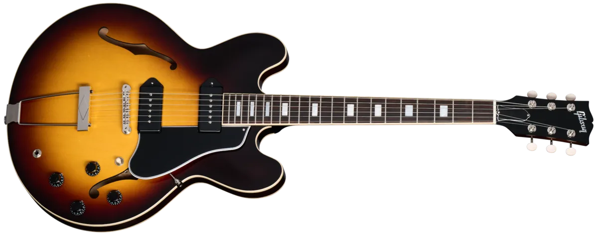 The Gibson ES-330 has garnered a reputation for its distinctive sound. comfortable playability. and classic aesthetics. making it a favorite among musicians seeking a versatile. vintage-inspired ESTU-style electric guitar. A close cousin of the Epiphone Casino"'. the ES-330 shares a similar fully-hollow thinline body made of 3-ply maple/poplar}maple and is Supremely resonant and warm-SOunding due to the hollOW body- trapeze tailpiece, and deep-set neck that creates an optimized bridge location. The mahogany nock has a cornfortable Rounded 'C' profile and features a rosewood fretboard With acrylic small block inlays and medium jumbo frets. The ES-330 is powered by a pair of Doggar P-90 pickups that are hand-wired to 500k potentiometers and Orange OropØ Capacitors for bright and Clear clean tones and wonderfully nasty, snarling tones when overdriven. The ES-330 is not only a great-sounding electric guitar for stage and studio use but is also equally enjoyable as a songwriting tool and is considered by many to be the ideal couch guitar" since it can be enjoyed equally well when unplugged and played acoustically. We•re proud to bring the ES-330 back to the Gibson catalog so players can once again have the opportunity to discover the mag ic Of this distinctive-sounding, vintage-insplred classic.