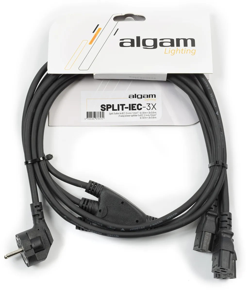 This Algam Lighting power cable is the ideal solution for powering several machines in close proximity. With a total length of 2.4 m, the main conductor is 1.80 m long, followed by 3 cables 60 cm long with IEC connectors.