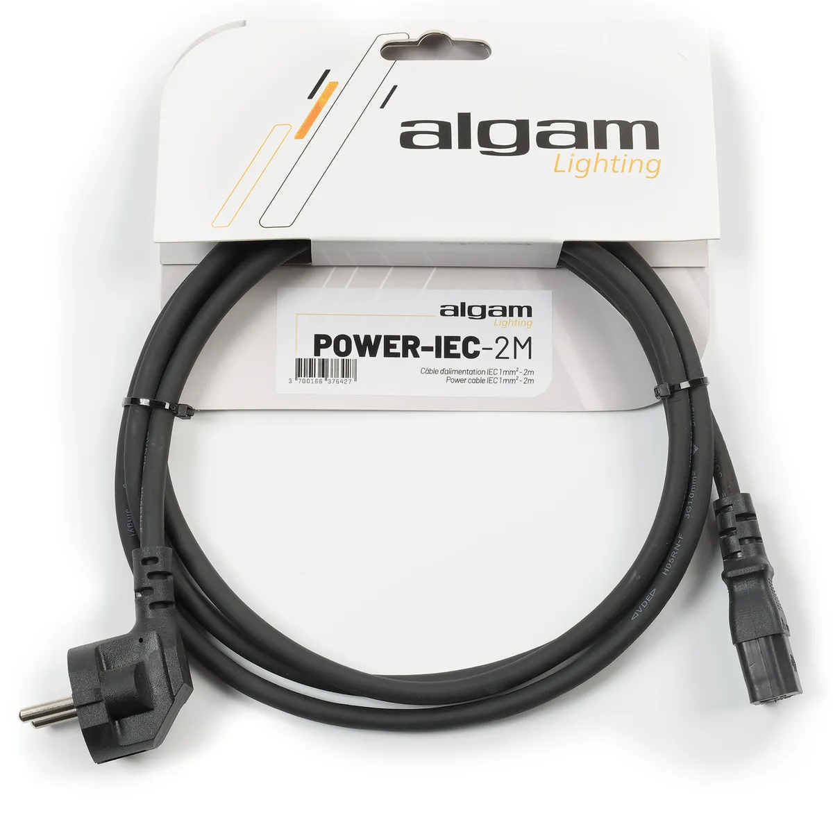 Algam Lighting's 2m power cable with IEC connector offers a simple and effective solution for powering your stage lighting equipment.A standard connectorsThe IEC connector is a widely used industry standard, guaranteeing compatibility with a multitude of devices. This robust, flexible cable makes it easy to install lighting systems such as LED PARs and many animation projectors.