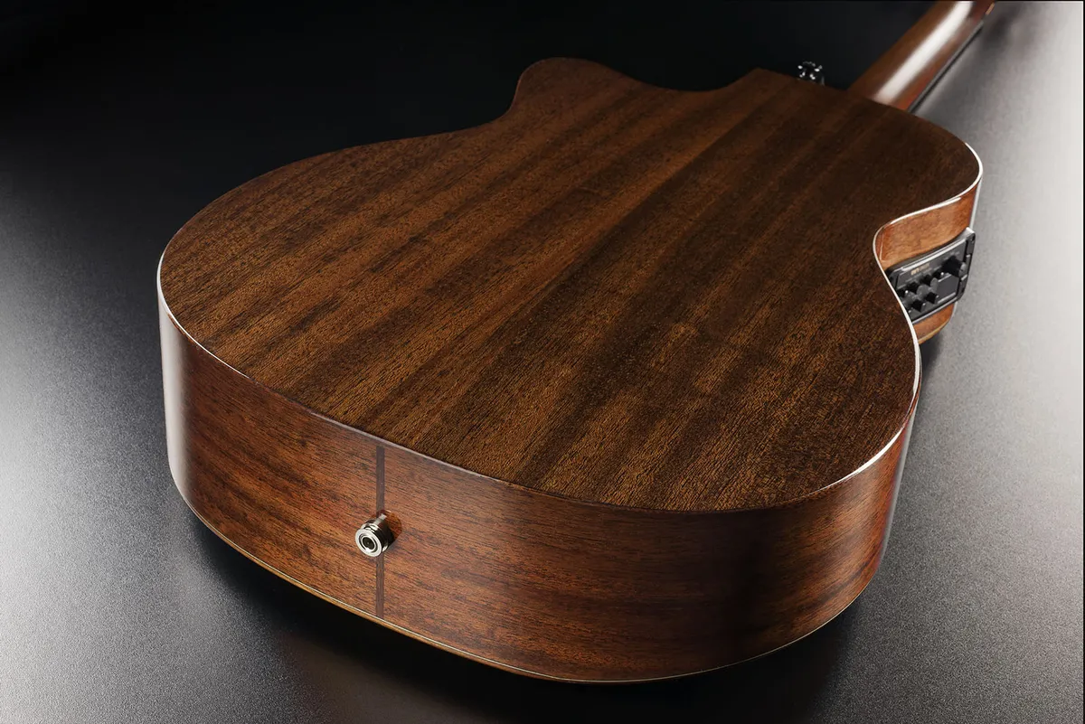 The Tramontane 118 series is defined by the stunning combination of a solid red cedar top and a Khaya mahogany body. The bevel, crafted from the same mahogany as the bindings, stands out beautifully against the two finishes of this special edition: Black and Brown Shadow, both enhanced by a high-gloss finish of exceptional quality.