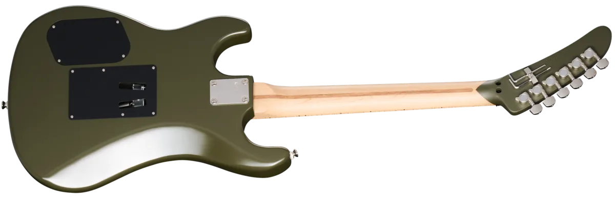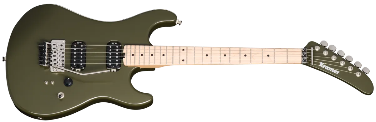 The Kramer 84 HH is an updated take on the legendary Kramer 84. While it has expanded features, we've kept all of the Made to Rock Hard Kramer attitude of the original intact. The Kramer 84 HH is equipped with an alder body with top and belly contours for comfort. The body has a Floyd Rose® 1000 Series tremolo paired with an R2 locking nut for vibrato bar acrobatics without the worry of going out of tune. The neck is a thermally aged bolt-on hard maple neck with a walnut skunk stripe on the back, a satin finish, and a hard maple fretboard that has 22 jumbo frets and black dot position markers. The neck has a Kramer SlimTaper™ C profile that is thin and fast-playing, making it perfect for shredding. The fretboard features a compound radius that is 10" at the nut and flattens out to 14" at the other end, so playing first-position chords is comfortable while allowing for wide string bends further up the neck without the notes fretting out. The dual-action truss rod is adjusted with a spoke wheel-style truss rod adjustment nut, which is positioned at the end of the fretboard for quick access. The body's gloss finish color is duplicated on the front and back of the 84 non-angled big banana headstock. It has a classic Kramer logo, die-cast tuning machines, a nickel string retaining bar, and a wrench holder for the Floyd Rose on the rear, so you'll always have the tools to adjust the tremolo on hand. The updated electronics feature a pair of Kramer USA Eruption pickups that were designed by Gibson Master Luthier Jim DeCola. Instead of using mounting rings, the pickups are screwed directly into the body for enhanced sustain. A 3-way toggle pickup selector switch lets you use either pickup by itself or run them together, and two mini toggle switches (one for each pickup) are provided for coil splitting, giving you both humbucker™ and single coil tones that you can combine at will. A single master volume control with a retro-style black knurled knob controls the output level of both pickups simultaneously, making overall volume adjustments easy. A Kramer premium gig bag IS included with the Kramer 84 HH to keep this instrument of sonic mayhem safe when you're traveling to your next gig.