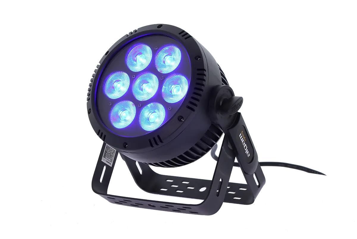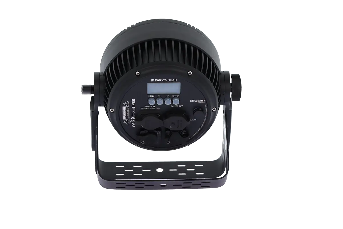 Specifically designed to illuminate outdoor scenes in the harshest conditions, the IP PAR 725 QUAD features 7 powerful 25W 4-in-1 RGBW LEDs opening to 20°, combined with IP65 connectors capable of withstanding the elements and dust infiltration. Its double bracket makes for easy installation, whether on the ground or on a structure.