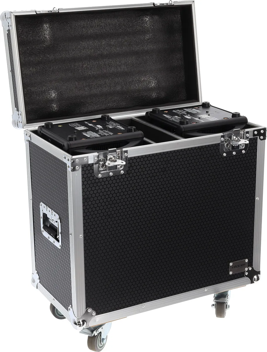 The MB200-FC flight case is the ideal transport solution for your MB200 moving heads. With its castors and carrying handles, this flight case will follow you wherever you go, ensuring effective protection for your machines from one performance to the next.The ideal transport solution for your MB200.This wooden flight case has been specially designed to provide optimum protection for two MB200 Beam moving heads during transport and storage. It is equipped with castors to facilitate transport of your equipment, even on uneven surfaces.Made from sturdy materials, it provides effective protection against bumps, scratches and other damage that may occur during transport. Its interior is padded to hold projectors in place and absorb vibrations, while the top panel is locked by a series of butterfly fasteners.